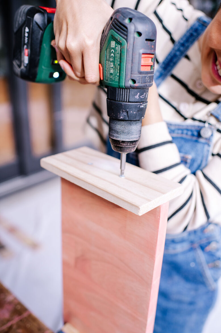 Now to put it all together! I drew a line down the centre of the bracing pieces and then drilled two pilot holes.