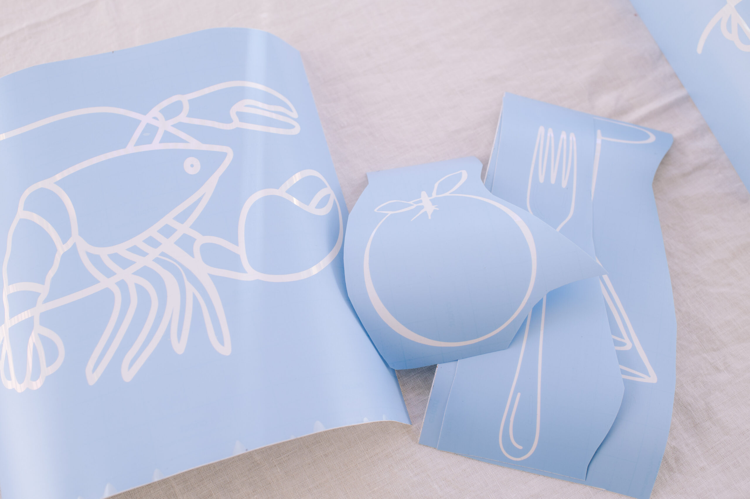 I really wanted to give a seaside Italian holiday vibe with a touch of playfulness, so I decided to make the personalised tablecloth the centre for the design. I’ve also been wanting to make wavy napkins for a long time using my cricut, so I decided this was the perfect time. To top it off, I decided to use my favourite etching cream hack to personalise some glassware. To create the look, I made my design using the Design Space app, customising the colours and getting the look just right. I used the font Didot for the lettering, and simply picked images and shapes from the Design Space library to create the other items. You can access my design here.