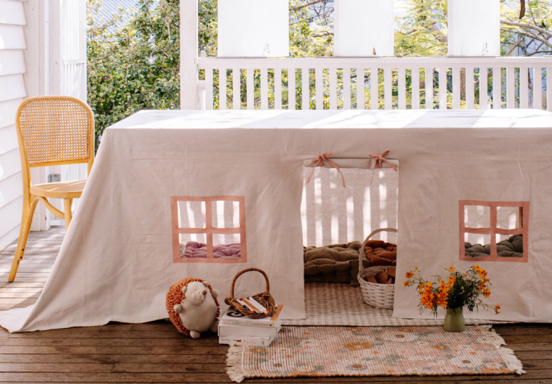 And there you have it! Making a table cloth cubby is so simple and just the cutest little project for the kids (and maybe for me too!)