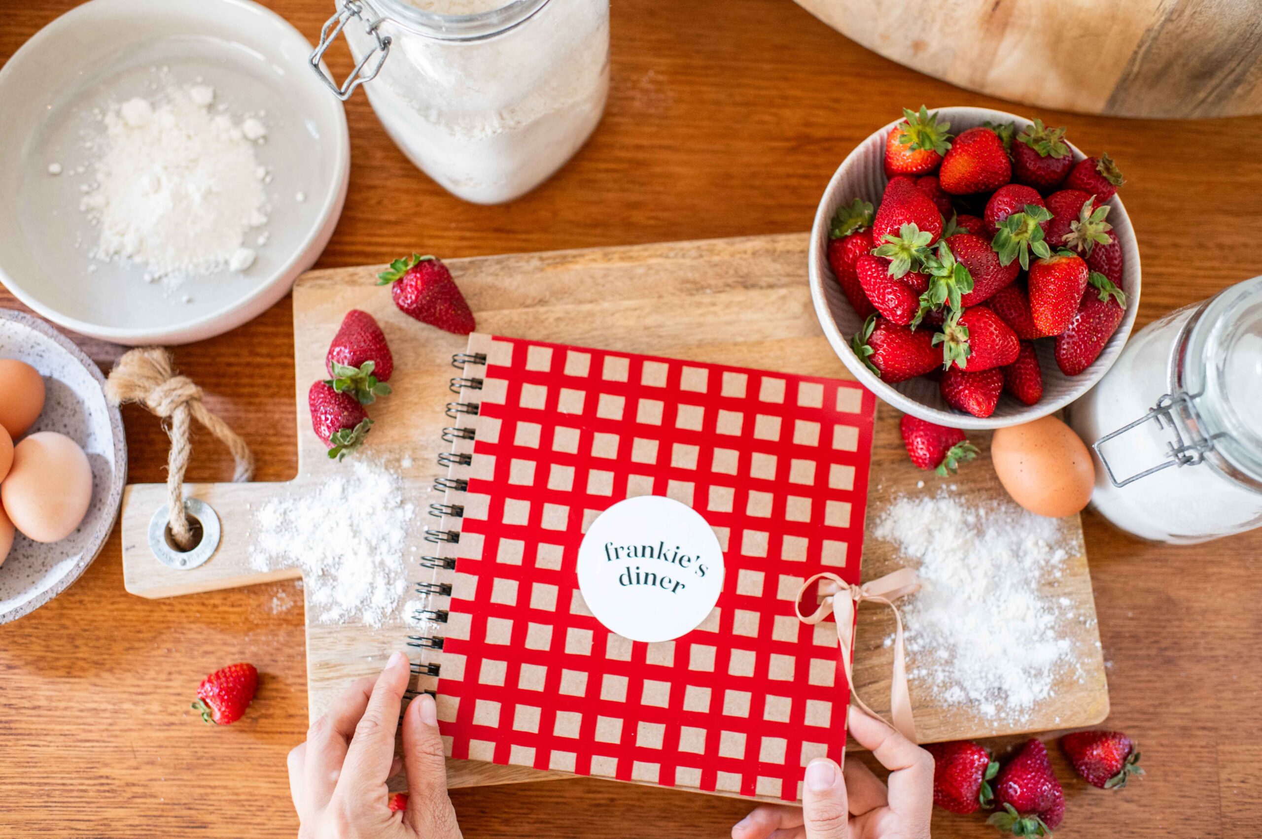 I wanted to give the cover of the recipe book a fun feel so I personalised it with a gingham inspired vinyl and a a little ‘Frankie’s Diner’ detail.