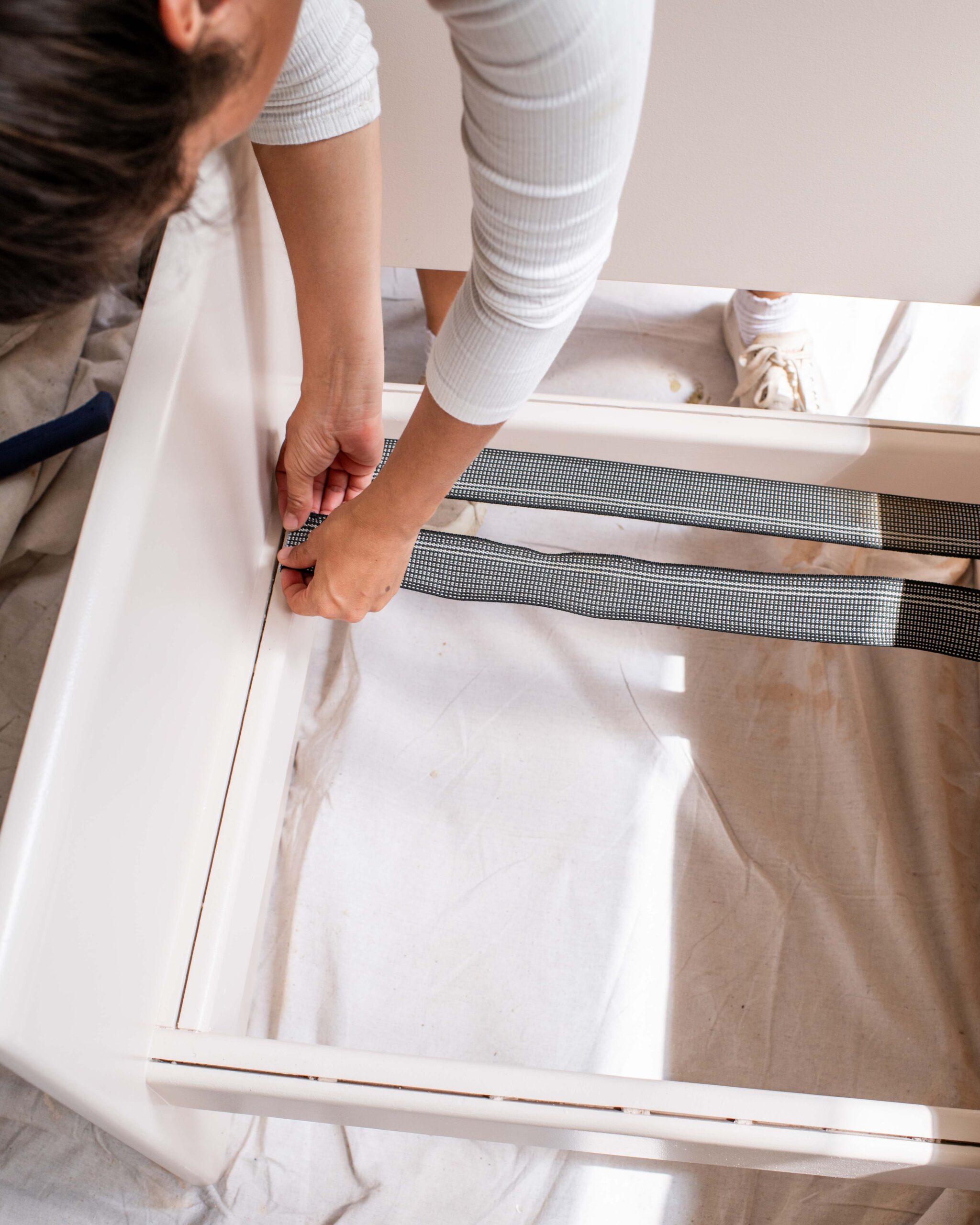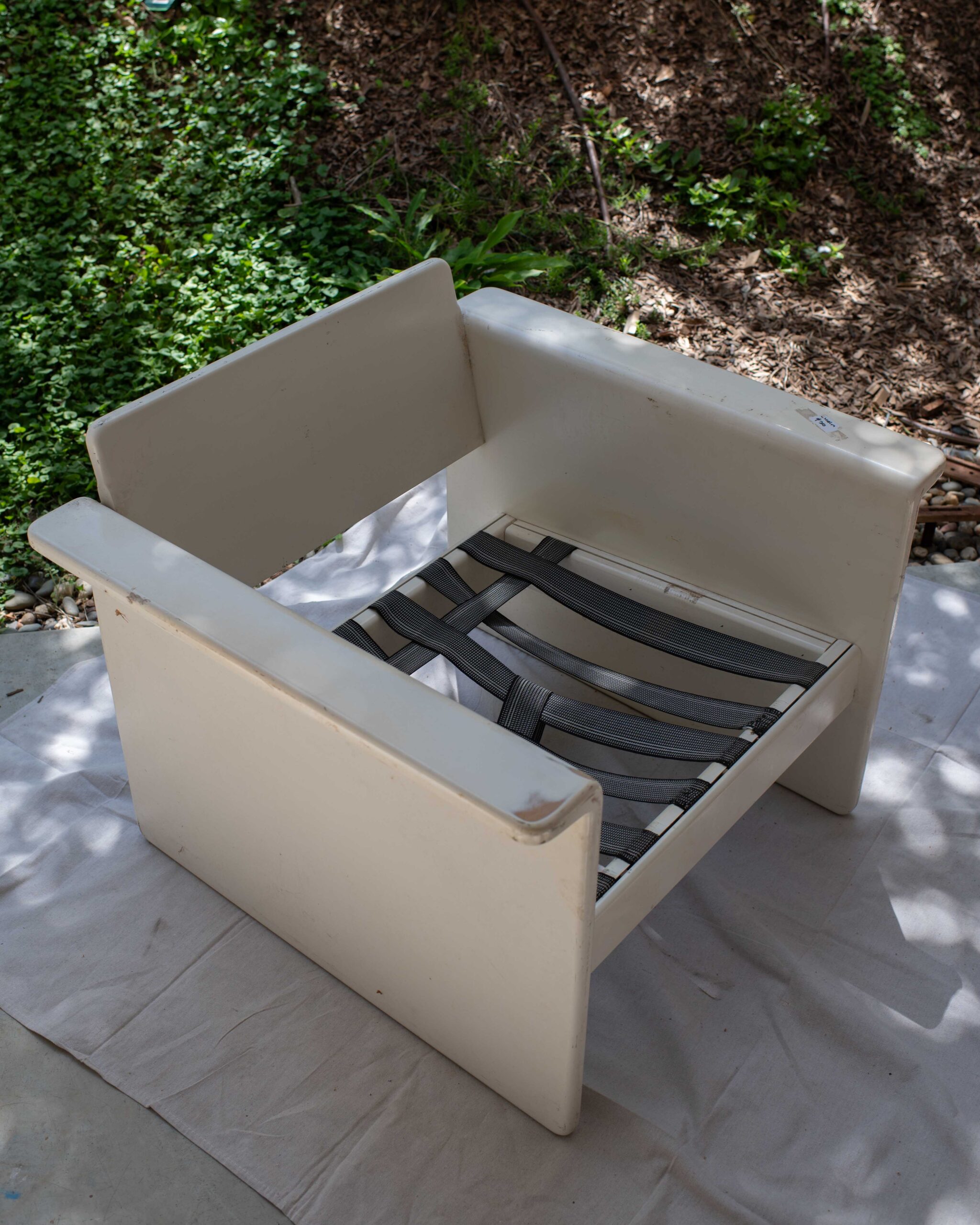- To finish, I added the webbing back on (I had reinforced it in places where it had frayed) and then placed the cushions onto the chair.