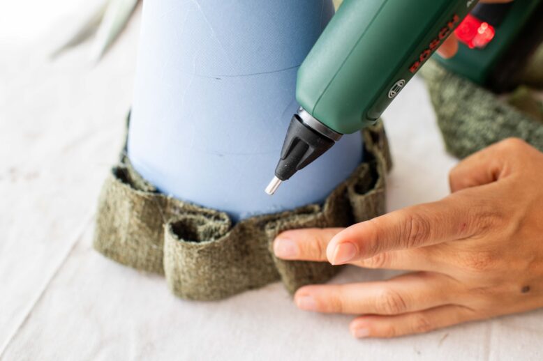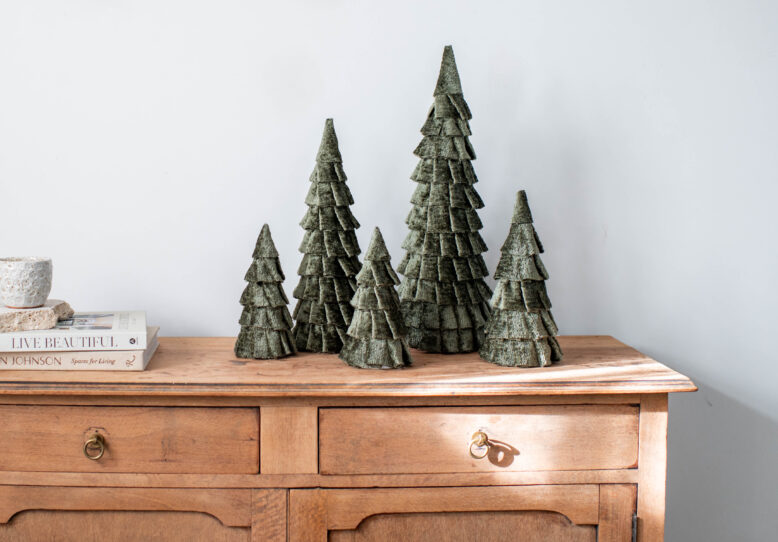 Christmas is my favourite time to get creative, and there’s nothing better than making a project out of salvaged items, so I pulled out my new Bosch cordless glue gun. The Bosch Advanced Glue 18V is cordless, making it so convenient and easy to use. It also lasts for ages with the 18V lithium-ion battery (2.5 hour run time!), has a high temp of up to 200 degrees and only weighs 300g. I was able to make these sweet Christmas trees so easily using only card stock, velvet and the glue gun. I love how they turned out and they’re the perfect centrepiece for the table! You can make these in so many different colours and sizes to suit your Christmas theme.