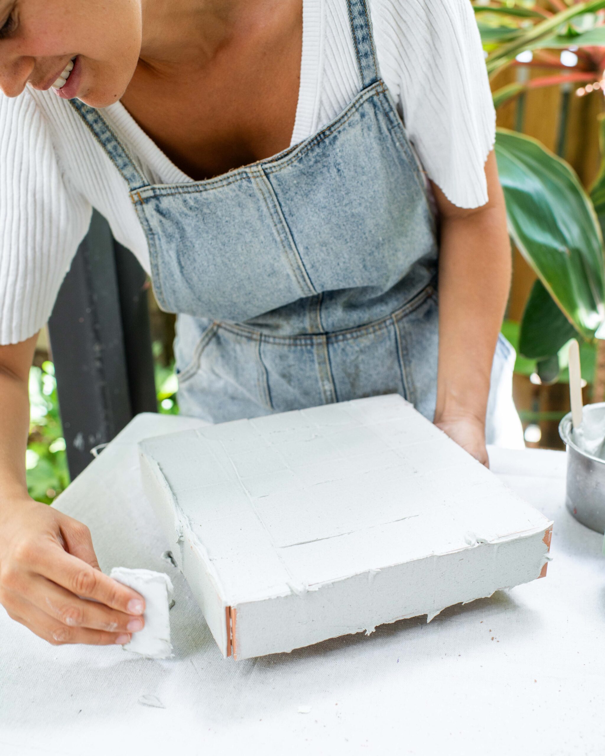 The most important thing to know when tiling a little project like this is whether the tiles fit or if you are going to have to cut them or modify the basel. Luckily these tiles fit on this shelf well, with only a little bit of overhang on the bottom where it’s not noticeable. I always prefer to not to have to cut the tiles, firstly because it’s time consuming but also because it can look a bit out of balance, so spend some time working this out for the best results. Pssst… if you’re looking for more tips about tiling furniture, there’s a whole module on just that in my Furniture Upcycling course!