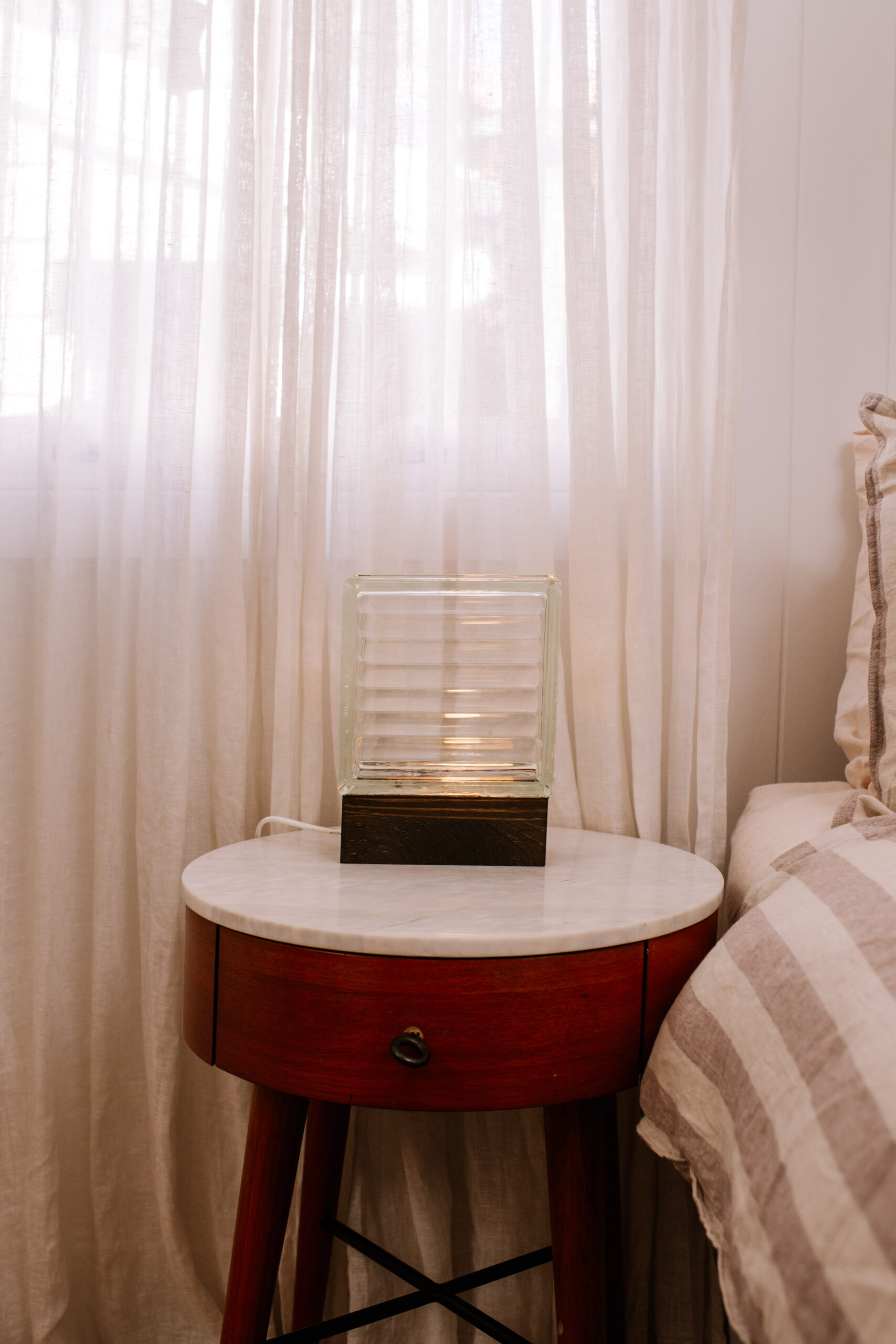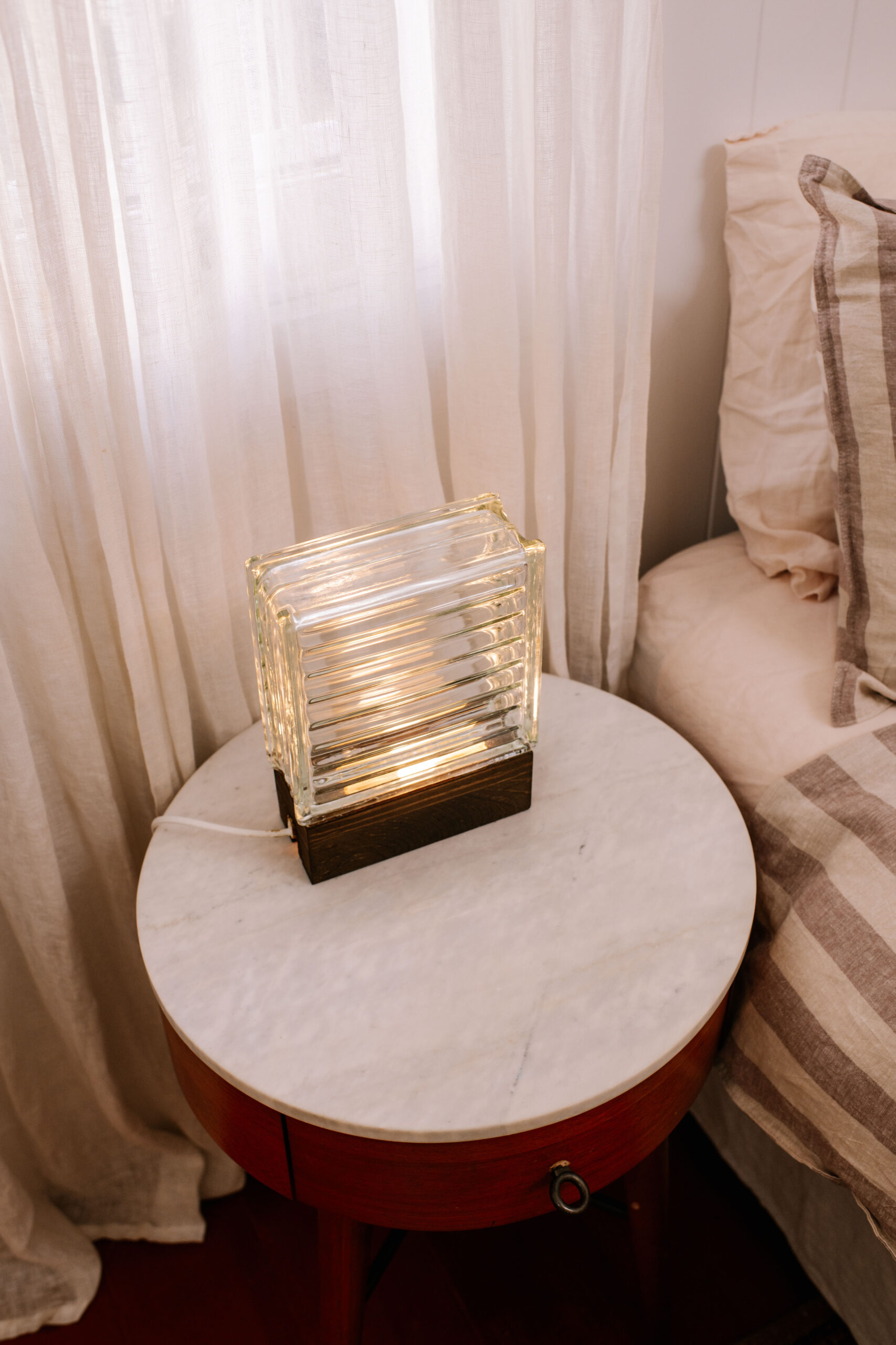 The last time I paid my local tip shop a visit I noticed a big pile of glass bricks and immediately grabbed a few! I thought all the way home about what I could make from them and had so many ideas but the one that really stuck with me was a light. I wanted to make something really clean and sleek that would be super simple to put together but that would make a statement.