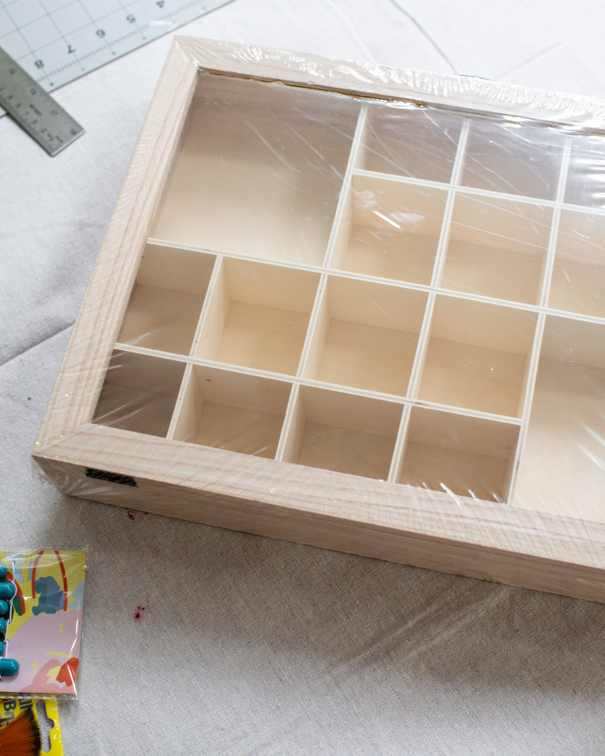 I started by separating the two large compartments into four so that the box had 24 spaces to match 24 Advent days.