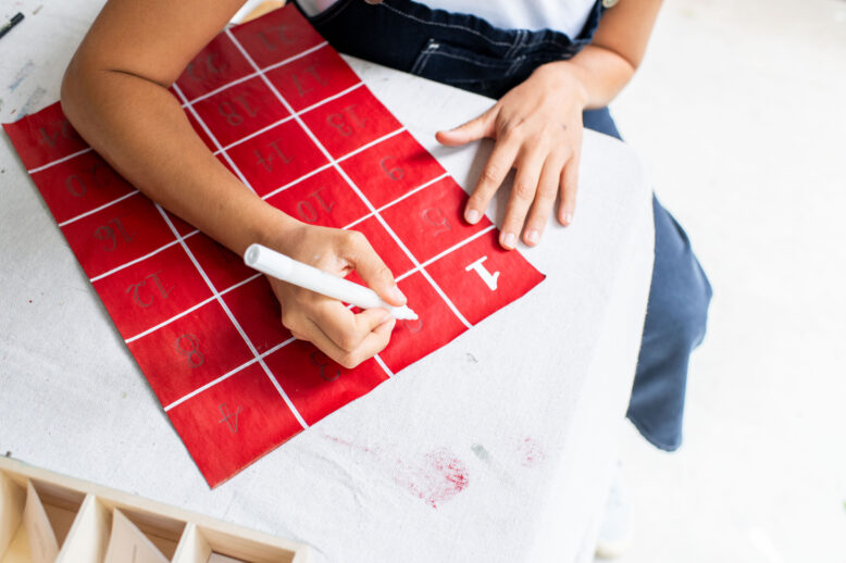 I then cut a piece of craft paper, painted it red and then draw a grid and added the Advent numbers.
