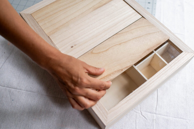 Then I cut and glued on hobby wood to the front of the lid of the box to create a solid door.