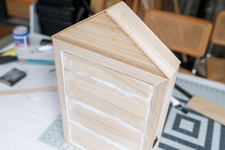 I then glued the roof onto the top of the box, I also used a bit of wood filler on the front but that is an optional step (I don't think it changed the look significantly).