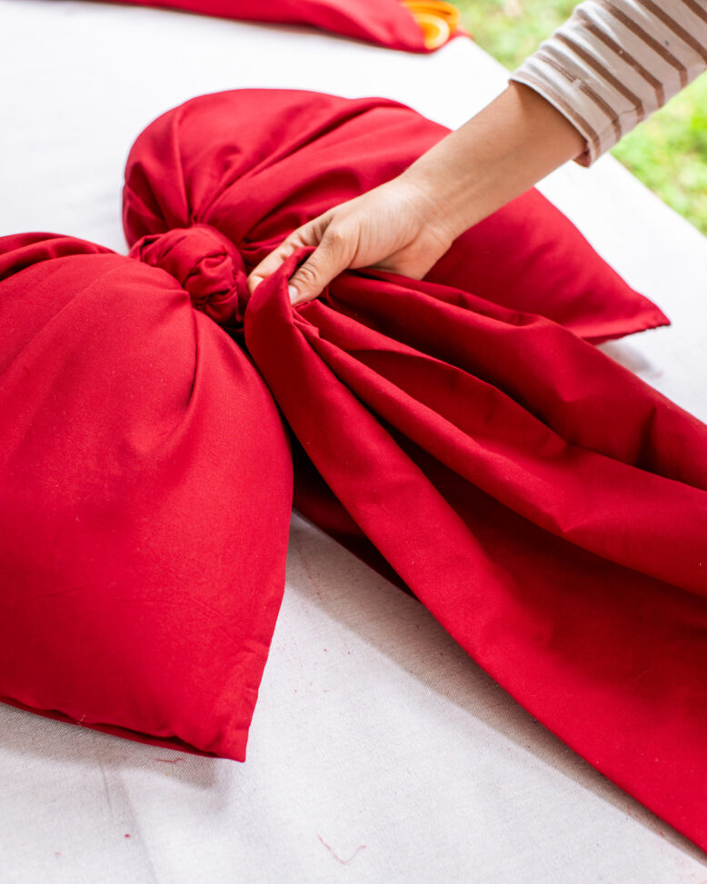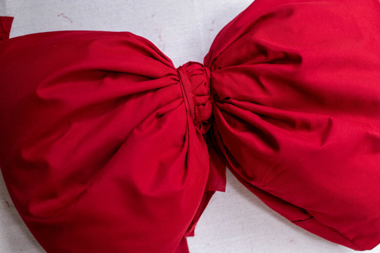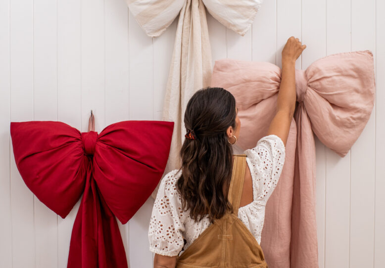 You know that I absolutely love bows at Christmas time. Like these beaded bow ornaments or this bow Christmas tree! Well, recently I made these huge bows out of some old pillows and pillowcases and couldn’t wait to share it. Who else is leaning into bow decor this festive season?