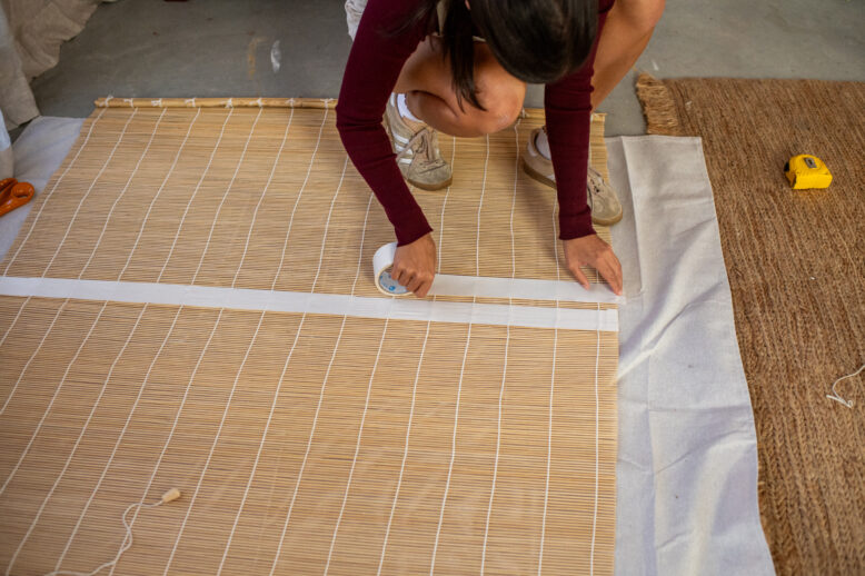 I started by laying the blinds flat and doing two lines of tape a little bit up from the bottom.
