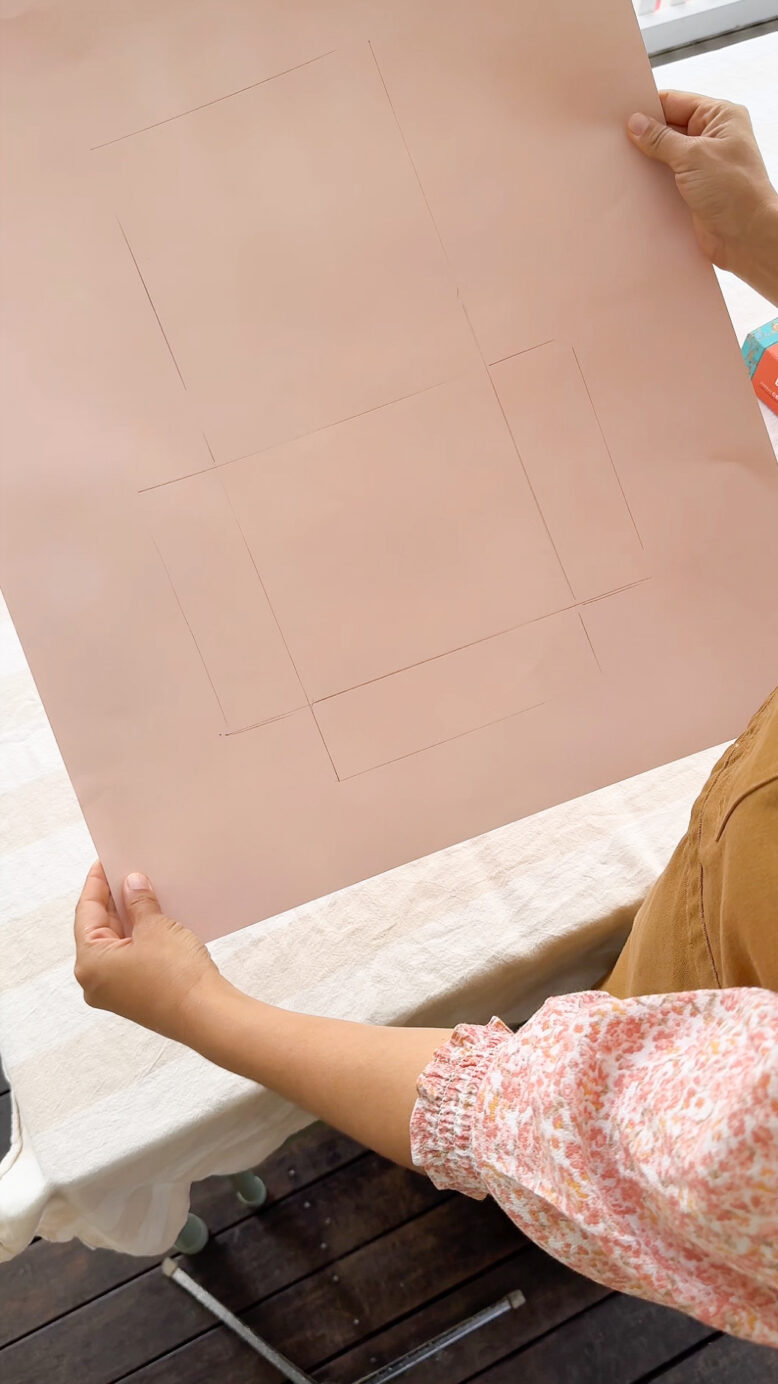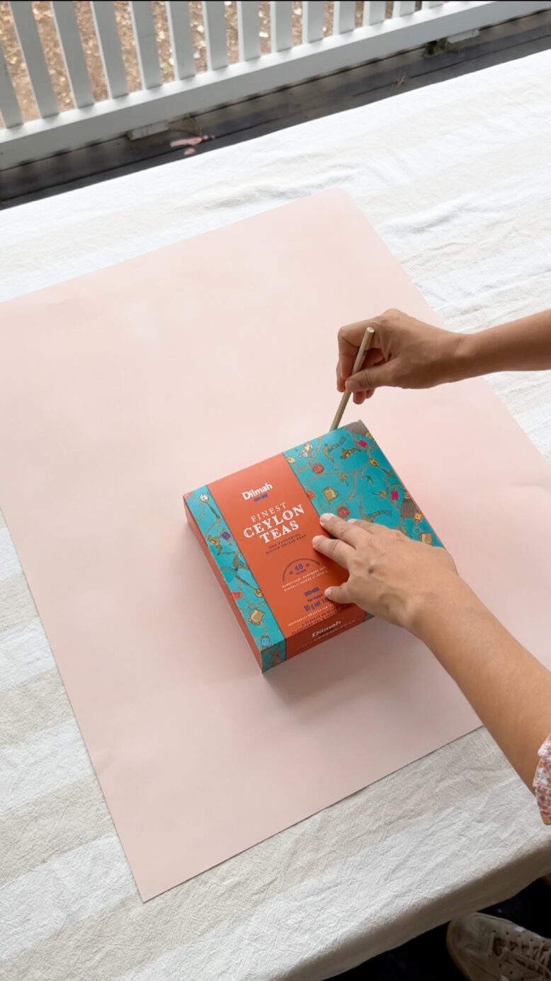 Step 1: Trace the shape: Start by placing your tea box (or any small gift) on a piece of sturdy card and trace around it. Repeat for all sides so you have a full box template laid out flat.
