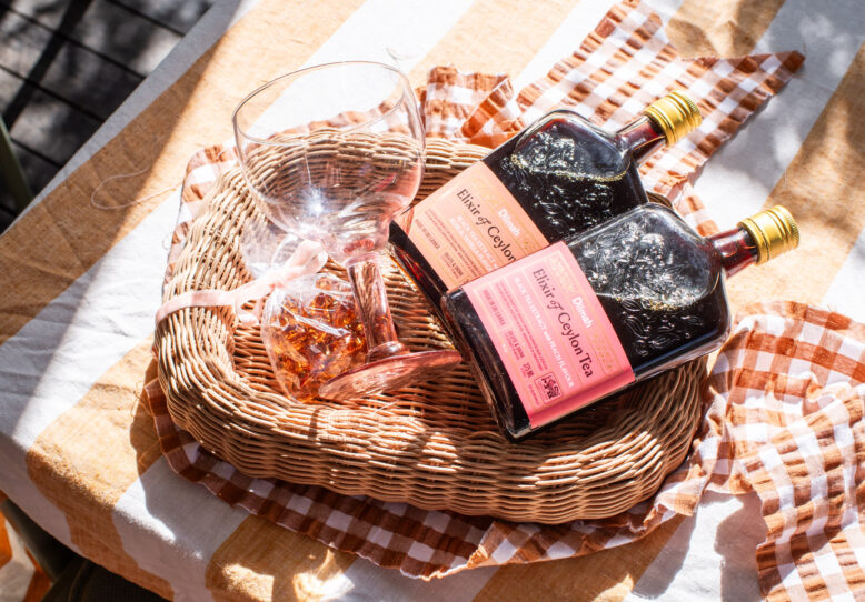 So I thought, what better gift than the gift of a bit of relaxation? To put this together I grabbed a cute tray and then I started with a thrifted glass, then added a handful of colourful beads and a keyring for a small DIY moment – because making something with your hands is such an underrated form of therapy! I tucked in two bottles of Dilmah’s Black Tea Elixir. It’s a tea concentrate and perfect for making cocktails and mocktails. To finish it off, I wrapped the tray with a soft fabric bow to tie everything together.