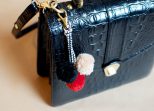 11. Once it is dry, thread your needle and then fold the top edges of the pvc over to create loops for the chain. Sew it down with one or two stitches and then glue another rhinestone over the top of the stitch to hide it.